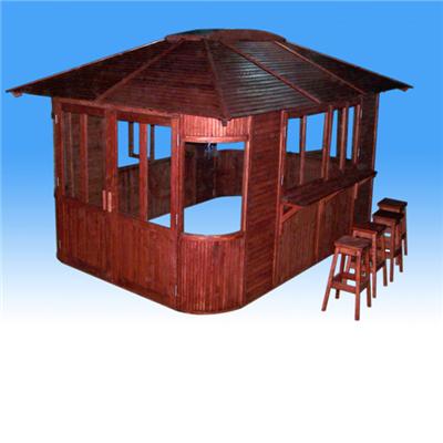 This model has an contemporary look, with lots of sliding windows and can keep warm in winter.The barstools included.